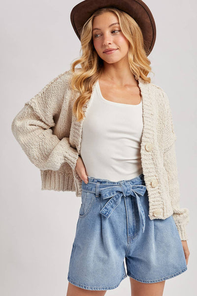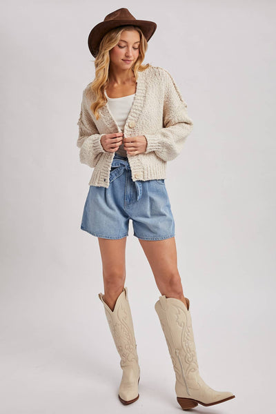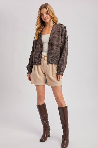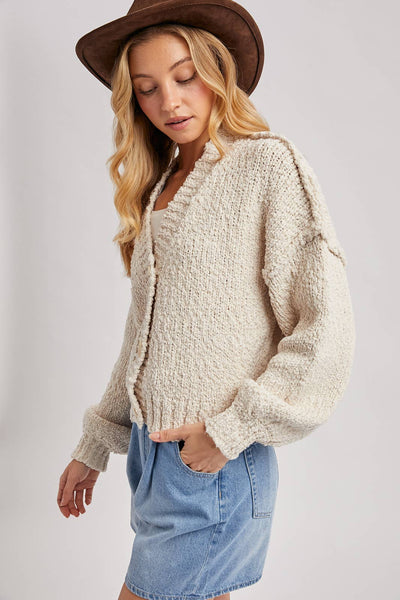 CROPPED POPCORN KNIT SWEARER CARDIGAN