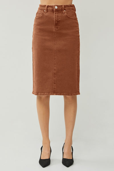 High Rise Back Slit Midi Skirt – Espresso