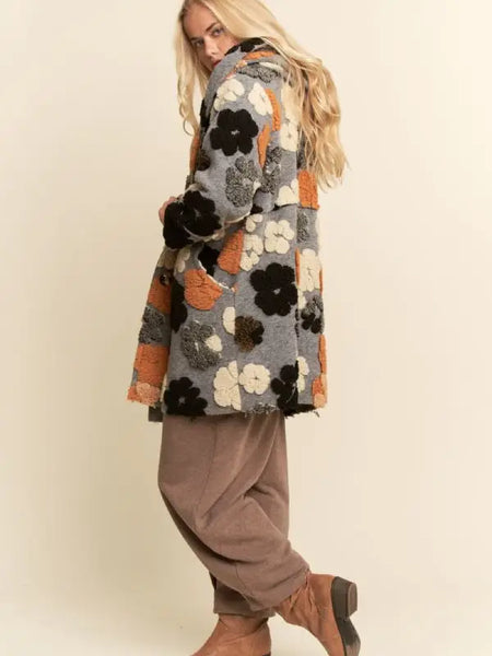 Wrap yourself in cozy, statement-making style with the Magnolia Jacket. This plush sherpa coat features an oversized floral pattern and a soft hood, bringing warmth and personality to your cold-weather wardrobe. A button-front closure and relaxed fit make it easy to layer, while the vibrant blooms add a touch of whimsy to any look.
