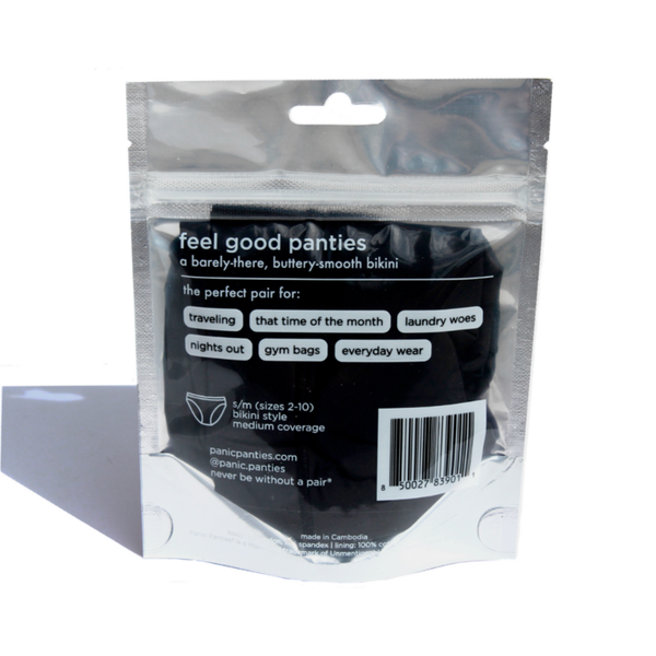 Consider these your panties in a pinch whenever, wherever you need them. Just like lipstick or a tampon, keep Panic Panties in your purse, throw them in your gym bag, stash them in your luggage—and never be without a pair. Boring bikinis begone. Our buttery-smooth No-Show Bikini is anything but. Just as sexy as it is functional, it gently hugs your body like second skin. Comfy enough to wear to bed, sleek and smooth enough to slip on under your jeans. These panties are: 👀 No VPL (visible panty lines) 🤸‍♀️ Ultra-stretchy waistband + elastic-free seams ☁️ Next-level-soft micro body + breathable cotton liner ✅ Oeko-tex certified—AKA free of harmful chemicals Perfect for: +Traveling +Freshening up down under +When you laugh so hard you pee a little +Date nights that lead to mornings after +That time of the month +When your Betty’s kinda sweaty +Gifting! Bachelorette favors, Galentine’s Day gifts, stocking stuffers, & more