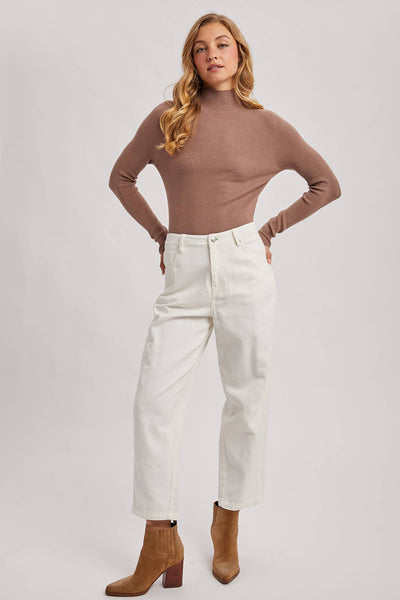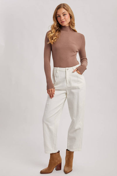 WHOLEGARMENT MOCK NECK RIBBED KNIT SWEATER
